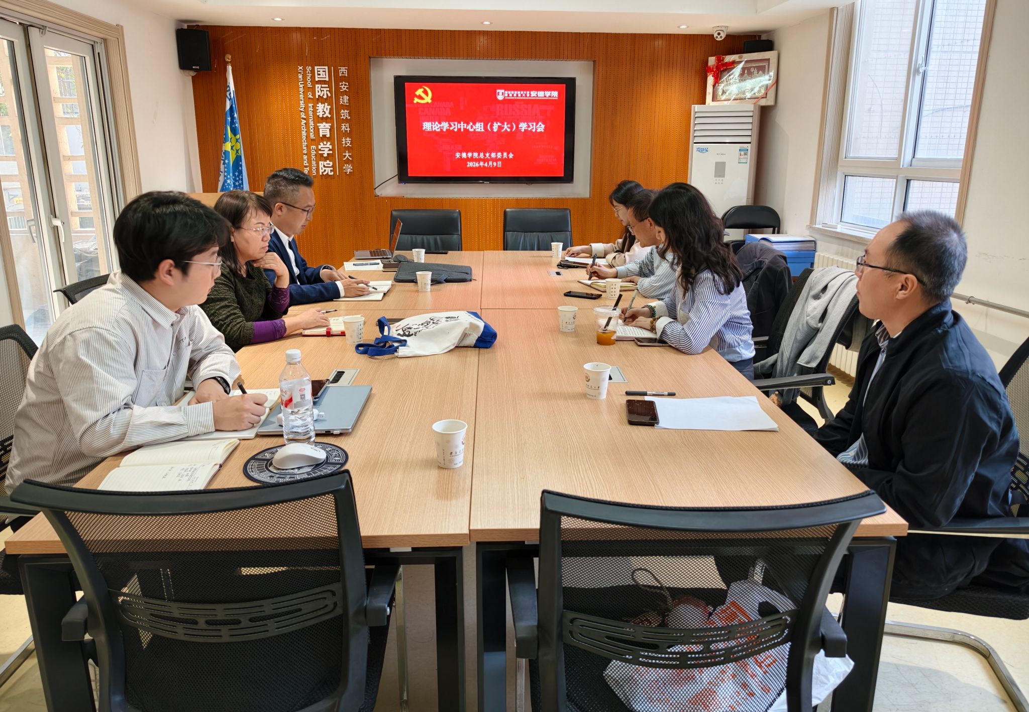 在国际教育学院会议室召开理论学习中心组(扩大)学习会暨树立和践行正确政绩观学习教育读书班第一期。学院党总支委员、纪检委员、教师代表参加会议,会议由党总支书记罗明忠主持。