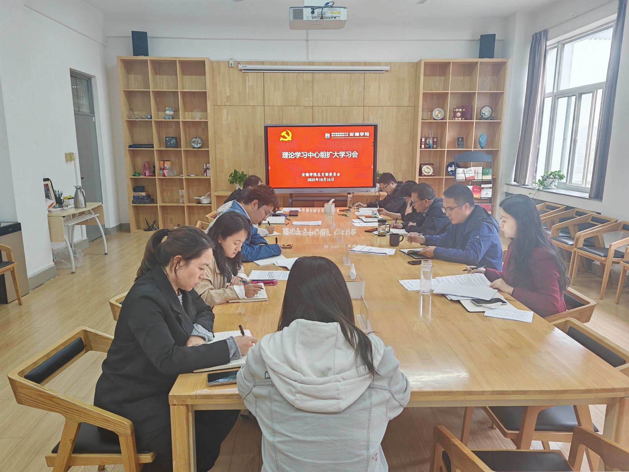 在学院212会议室召开理论学习中心组(扩大)学习会。学院领导班子及教工代表参加会议,会议由党总支书记罗明忠主持。